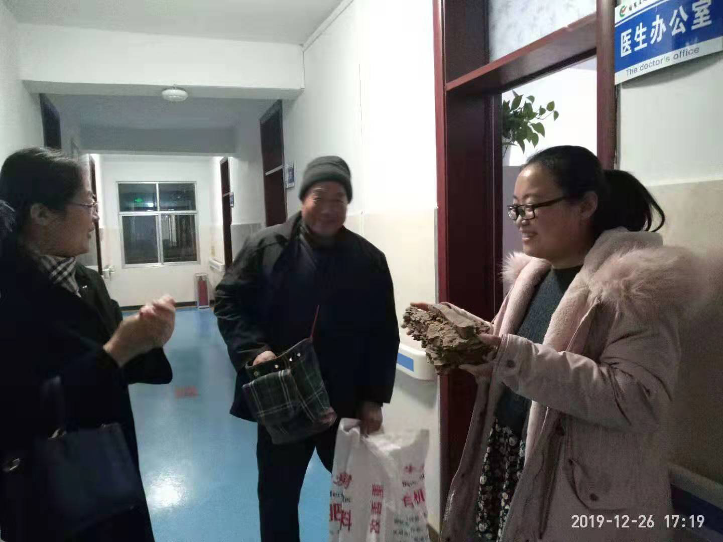 老年医学科患者送“奇石”表达感激之情,在新春佳节来临之际,非常感谢老年医学科全体医护人员对我的治疗和照顾。我没有什么可以留给你们,但我把感激的心留在这里;祝你们万事如意,工作顺利。